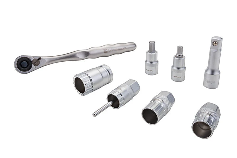 Wijzersleutels voor de volgende onderdelen zijn inbegrepen: Shimano cassettes, Shimano trapassen (ook ISIS), Campagnolo lagers en cassettes, Shimano MF freewheel geschikt, 8/10 steeksleutel, verlengstuk.