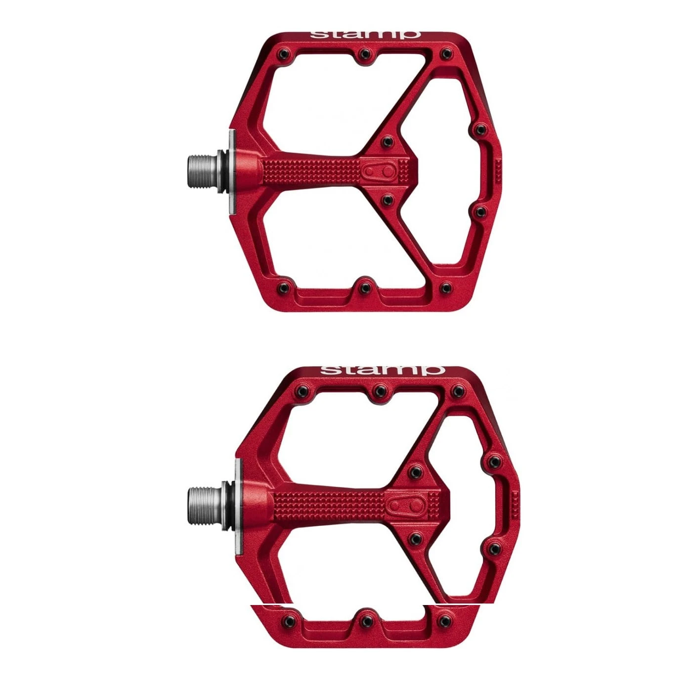 Met twee verschillende maten zorgen de Stamp pedalen voor een optimale verbinding tussen schoen en pedaal. Het lage gewicht door de minimale hoogte, het holle platform (15/13/15 mm) en de 10 verwisselbare pennen per kant houden de voet stevig op zijn plaats. De hoogwaardige lagering en de externe afdichting ronden het totaalpakket af.