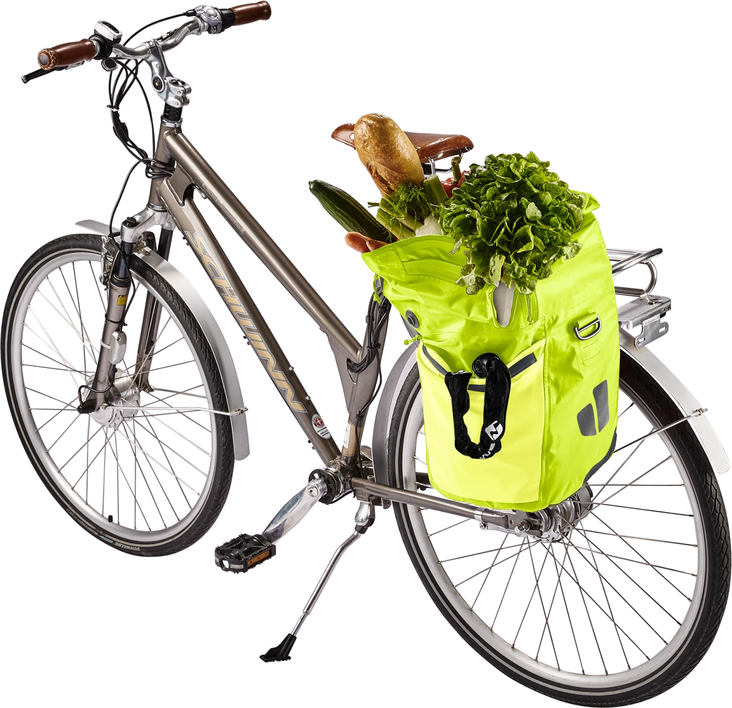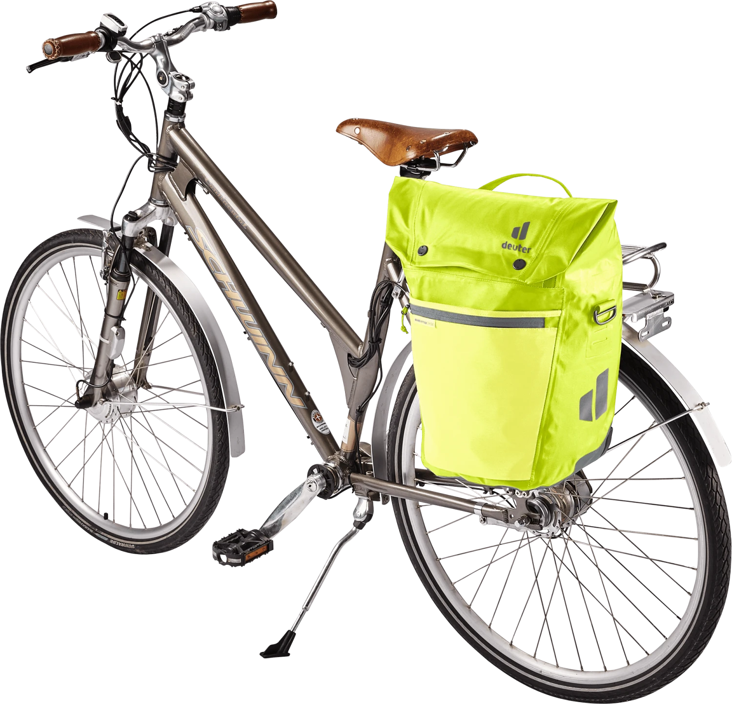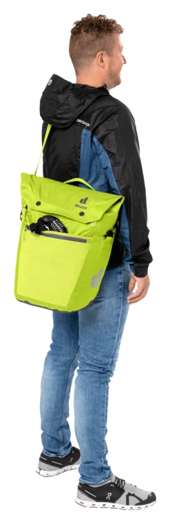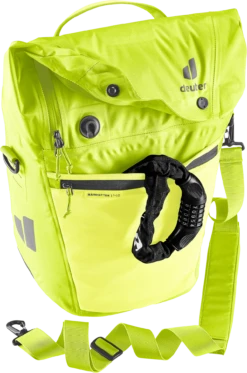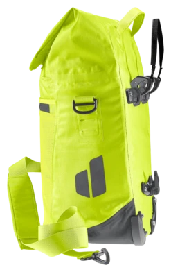 De waterdichte fietstas houdt boodschappen, een verandering van kleding en werkmateriaal veilig tegen nat worden in de regen of opspattend water. Dankzij de royale zakflap met magneetsluiting kan het volume van dit organisatietalent worden uitgebreid met 10 liter extra opbergruimte.