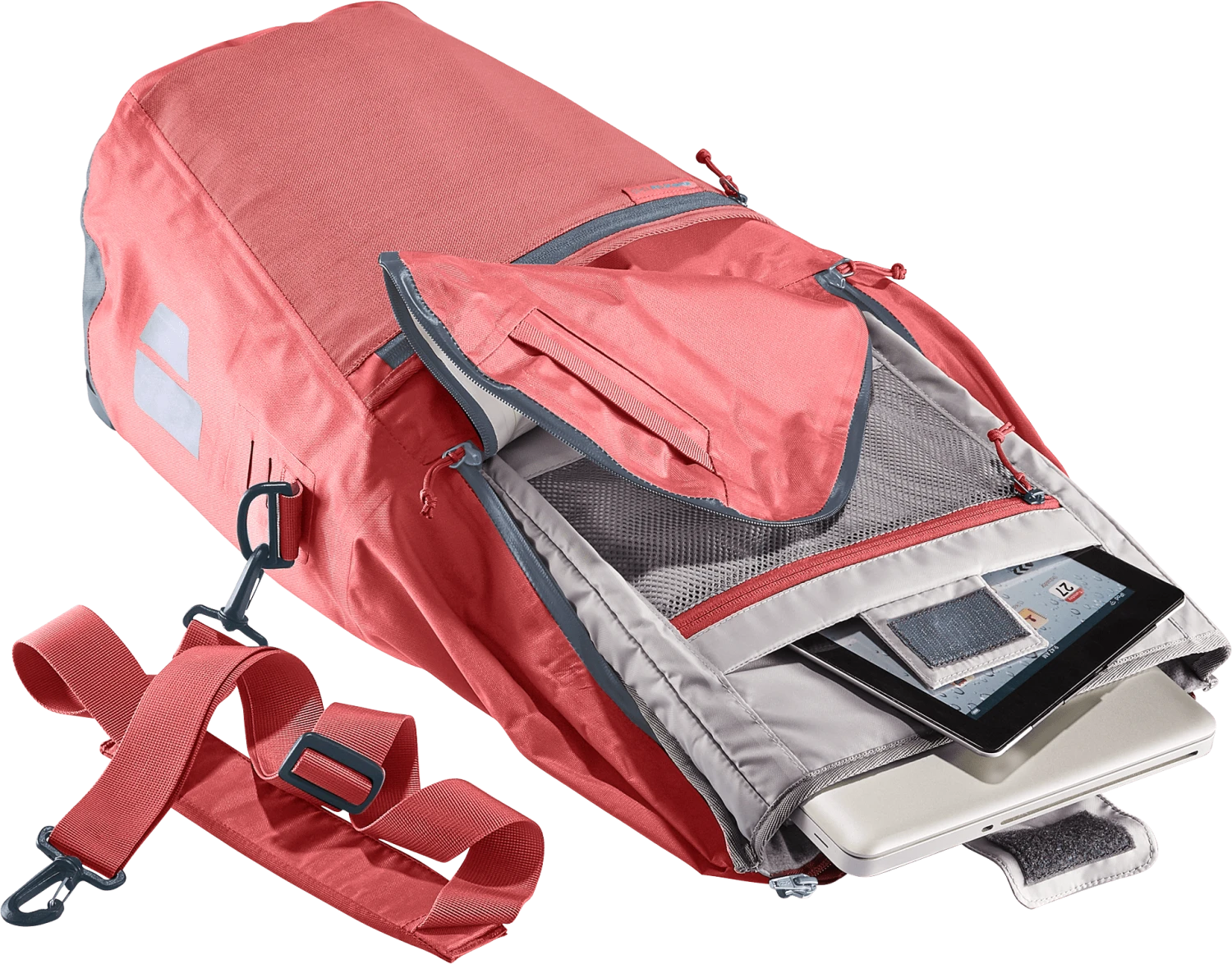 – Zip-in organiser unit voor tablets, documenten en versterkt laptopvak (15 inch)