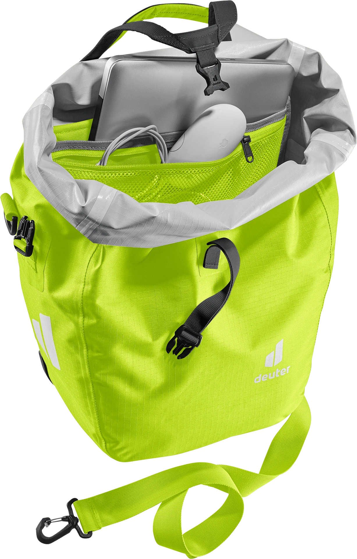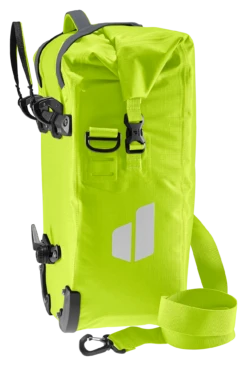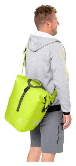 Die wasserdichte Fahrradtasche bewahrt Reisegepäck sicher vor dem Eindringen der Nässe durch Regen oder Spritzwasser. Dank des 2-Wege-Rolltopverschlusses kann das Volumen um zusätzliche 5 Liter erweitert werden. Die neu entwickelte BagFix-Halterung sorgt für maximale Bewegungsfreiheit, da die Last zu 100% auf dem Hinterrad und nicht auf dem Rücken des Bikers liegt. Die Tasche kann mit nur einem Handgriff vom Gepäckträger abgenommen und als Schultertasche verwendet werden. So sind ihrem Einsatz kaum Grenzen gesetzt.