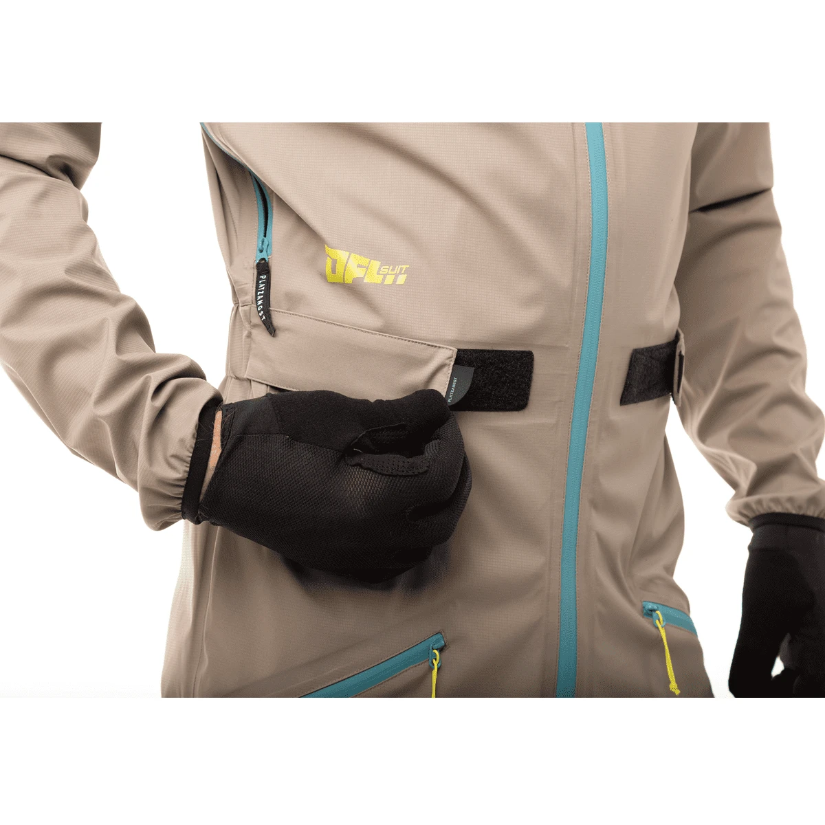 Het nieuwe DFL-pak van Platzangst is het antwoord op regen, vuil, wind, plassen, modder, drek…. Geen excuses meer, nu is het tijd voor onze DFL Suit. Met een waterkolom van 10000 mm is hij geknipt voor tochten in de stromende regen en plezier in modderige plassen. De grote kap past gemakkelijk over de helm. De verstelbare tailleband en reflecterende details ronden het DFL Suit af.