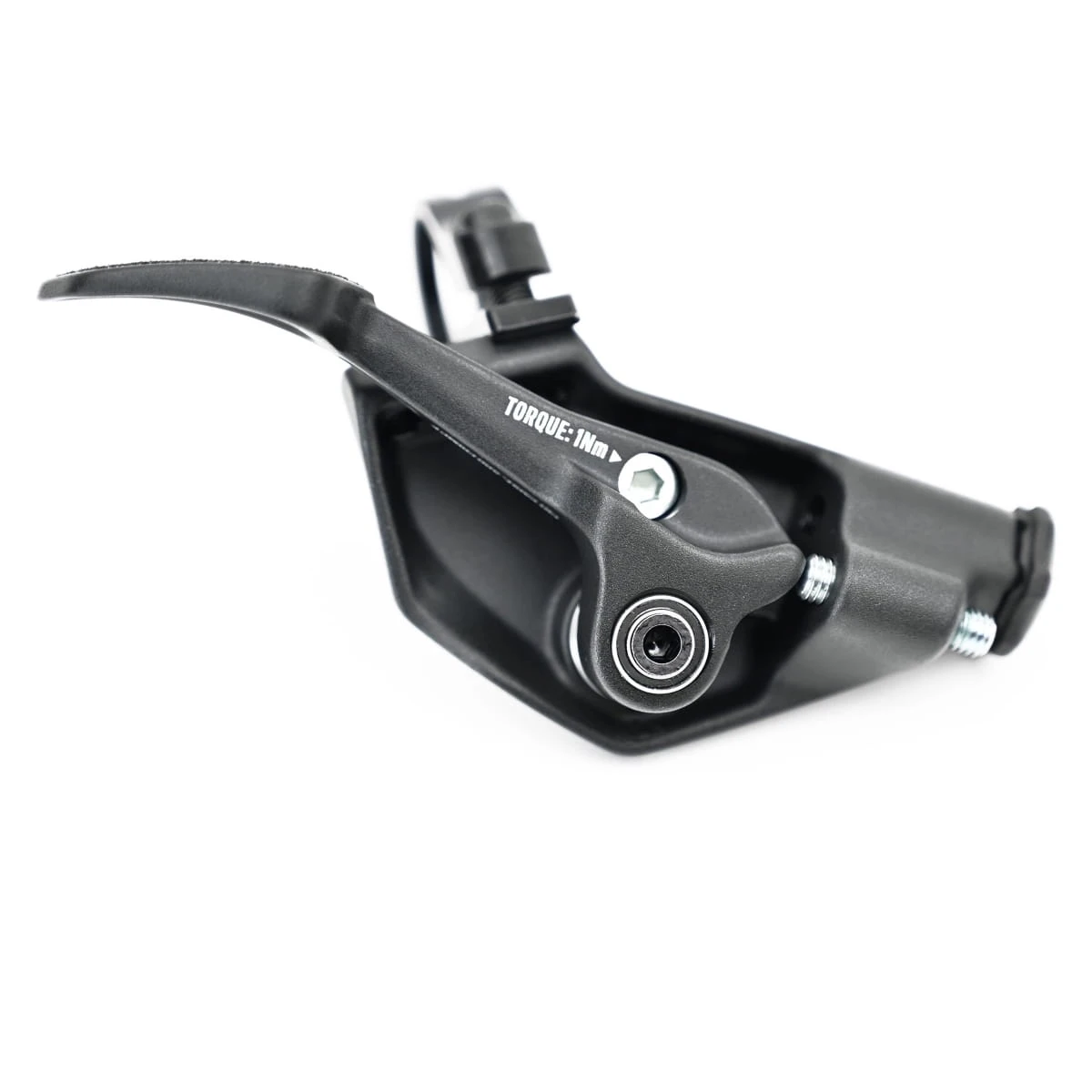 De gloednieuwe Vario 1x Dropper hendel is de perfecte aanvulling op E*Thirteen’s nieuwe Vario Infinite Dropper Post. Of elke andere bekabelde dropper zadelpen! De in hoek instelbare hendel draait op twee cartridge-lagers voor een soepele en gemakkelijke bediening, terwijl de geprofileerde hendel een slipvrije bediening garandeert. De Vario 1x hendel wordt bekroond door zijn robuuste aluminium behuizing. Het is compatibel met Matchmaker en kan perfect worden geïntegreerd in alle gangbare remhendels. Bovendien maakt de Vario uitlijning op maat mogelijk met drie verschillende montageposities voor de klem, afhankelijk van de voorkeuren van de rijder en de gewenste cockpitconfiguratie.