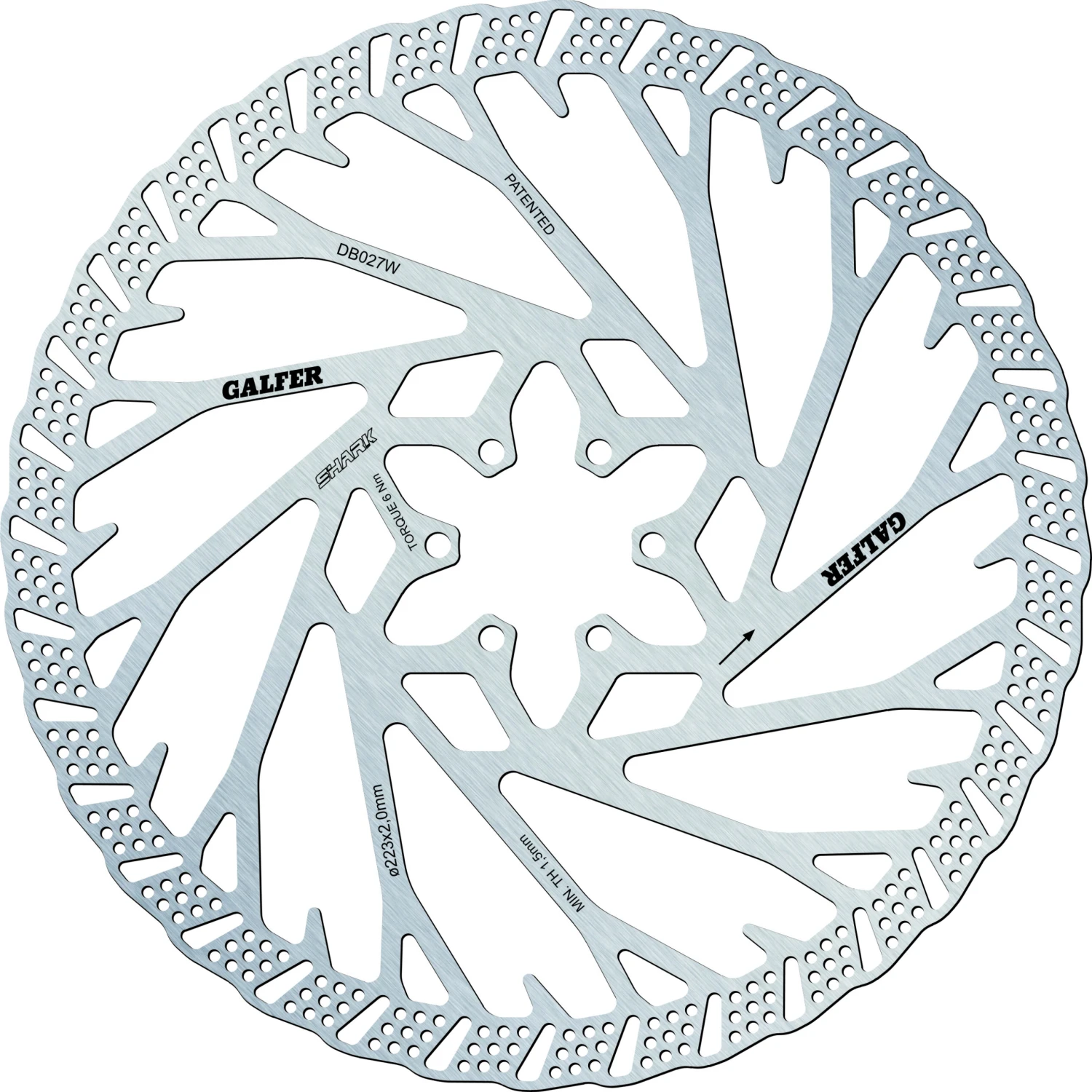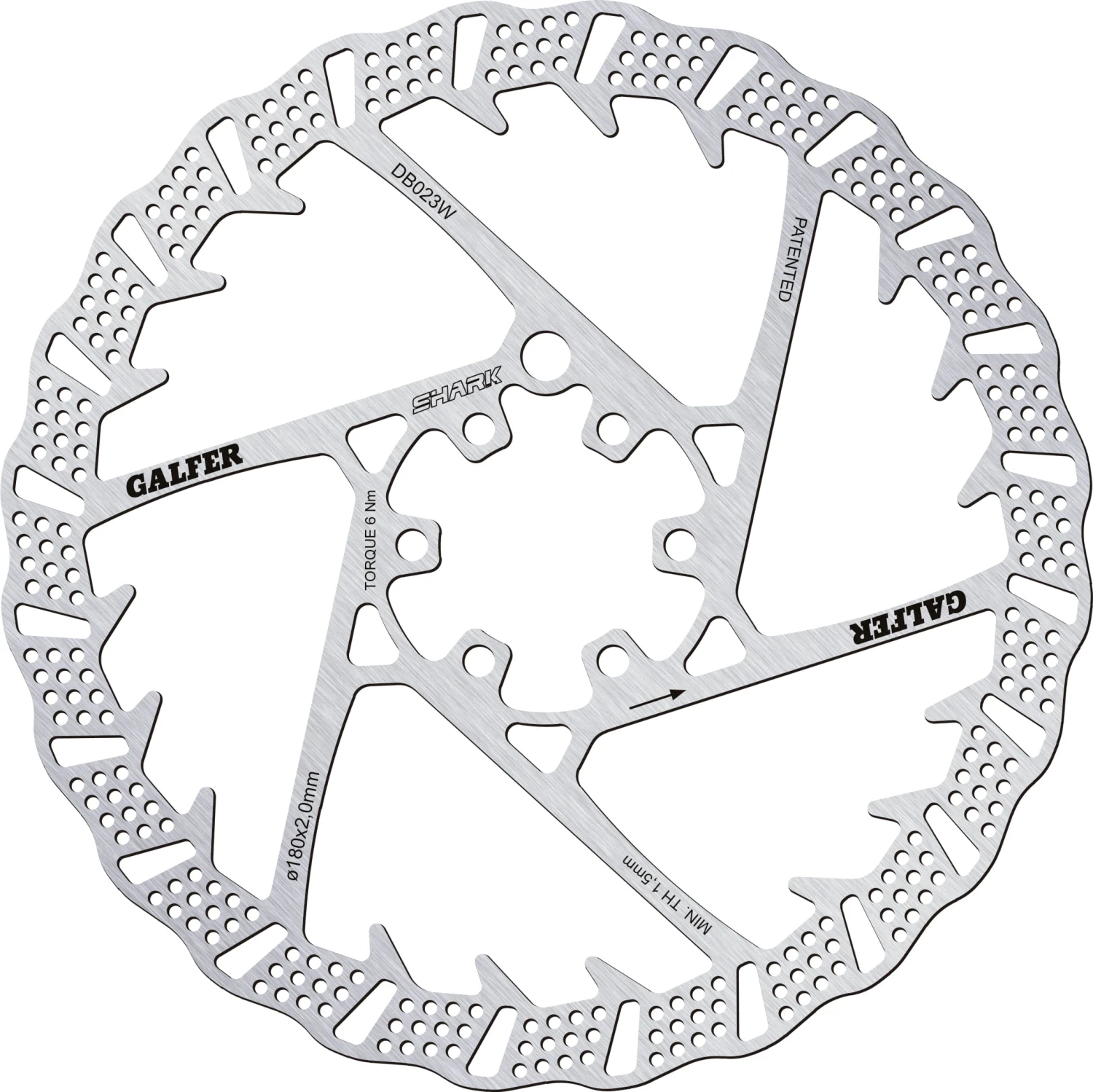 Galfer lanceert met de nieuwe en innovatieve Shark Disc® de meest perfecte MTB remschijf van deze tijd. Het innovatieve productieproces, met behulp van een lasersnijder, bereikt het optimale ontwerp voor de best mogelijke prestaties. Een van de belangrijkste unique selling points zijn de interne Shark Fins (koelvinnen), waaraan de schijf zijn naam dankt: Shark Disc®. De interactie van de vinnen met de vele kleine gaatjes in de schijf kan de warmteontwikkeling verminderen, terwijl het ontwerp van de buitenste as en de zijopeningen zorgen voor sterke en consistente remprestaties.