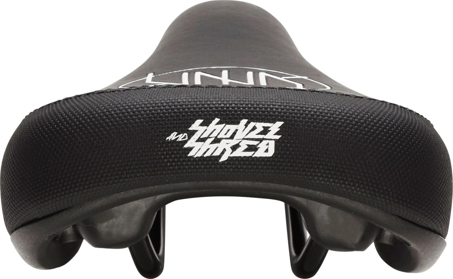 Het Nico Vink Signature-zadel is daarom op de markante punten versterkt met Kevlar en biedt door de verhoogde flanken optimale controle over de fiets, ook wanneer deze niet in contact staat met de grond.