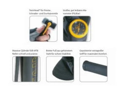 De eerste vloerpomp speciaal voor mountainbike-banden met een groot volume. Extra fijn gegradueerde meter. Pompt tot 5 bar en is geproduceerd om aan de eisen van elke MTB-atleet te voldoen.