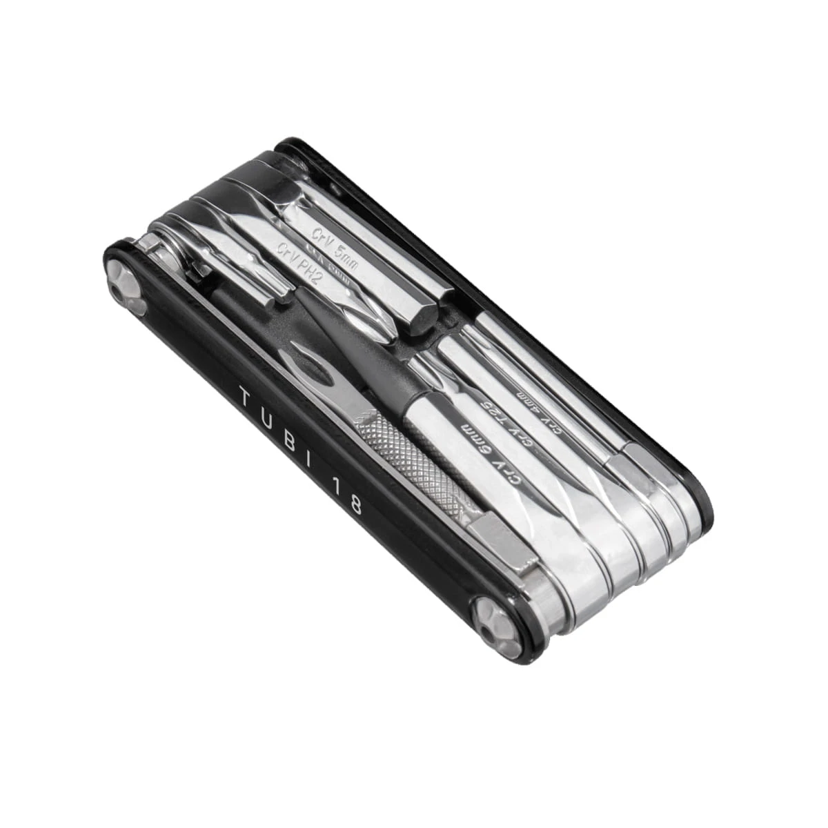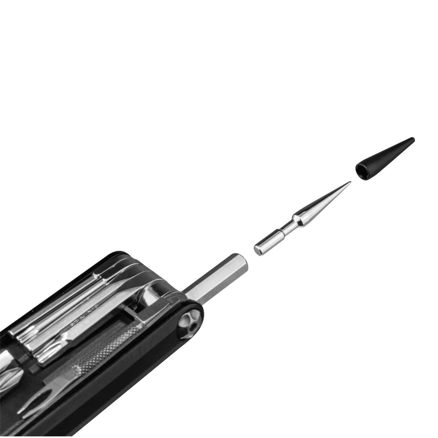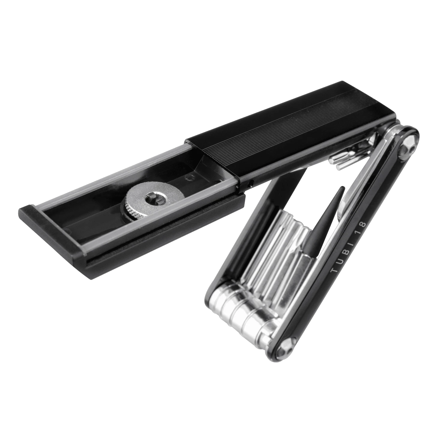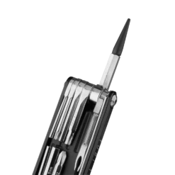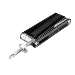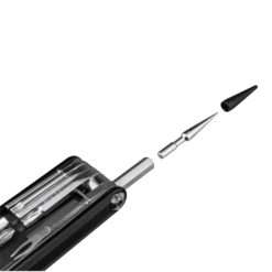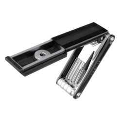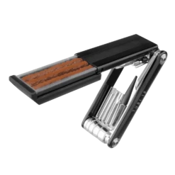 Deze slimme multitool wordt geleverd met geïntegreerd gereedschap voor het repareren van schade aan tubeless banden, maar heeft ook gereedschap voor andere werkzaamheden aan de fiets. Dit alles is verpakt in een slanke behuizing van gesmeed aluminium. De tubeless gereedschappen zijn rechtstreeks verbonden met het karkas, dat aan de buitenkant wordt vergrendeld om meer hefboomkracht en minder inspanning te bieden bij het repareren van banden. Bovendien is de behuizing voorzien van geribbelde grijpvlakken voor een stevige grip tijdens het werken. Het gereedschap is verkrijgbaar in zwart, zilver en goud.