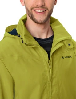 Milieuvriendelijke regenbescherming. Het lichtgewicht 2-laags regenjack met dunne gaasvoering beschermt u betrouwbaar tegen nattigheid en wind in uw dagelijkse fietsleven. De capuchon kan worden opgerold en opgeborgen in de kraag. Met reflecterende elementen. Het materiaal is bijzonder milieuvriendelijk vervaardigd volgens de bluesign®-norm. Dit product is gemaakt met Eco Finish milieuvriendelijk waterafstotend middel zonder fluorkoolstoffen (PFC). Het VAUDE Green Shape label staat voor een milieuvriendelijk, functioneel product gemaakt van duurzame materialen.