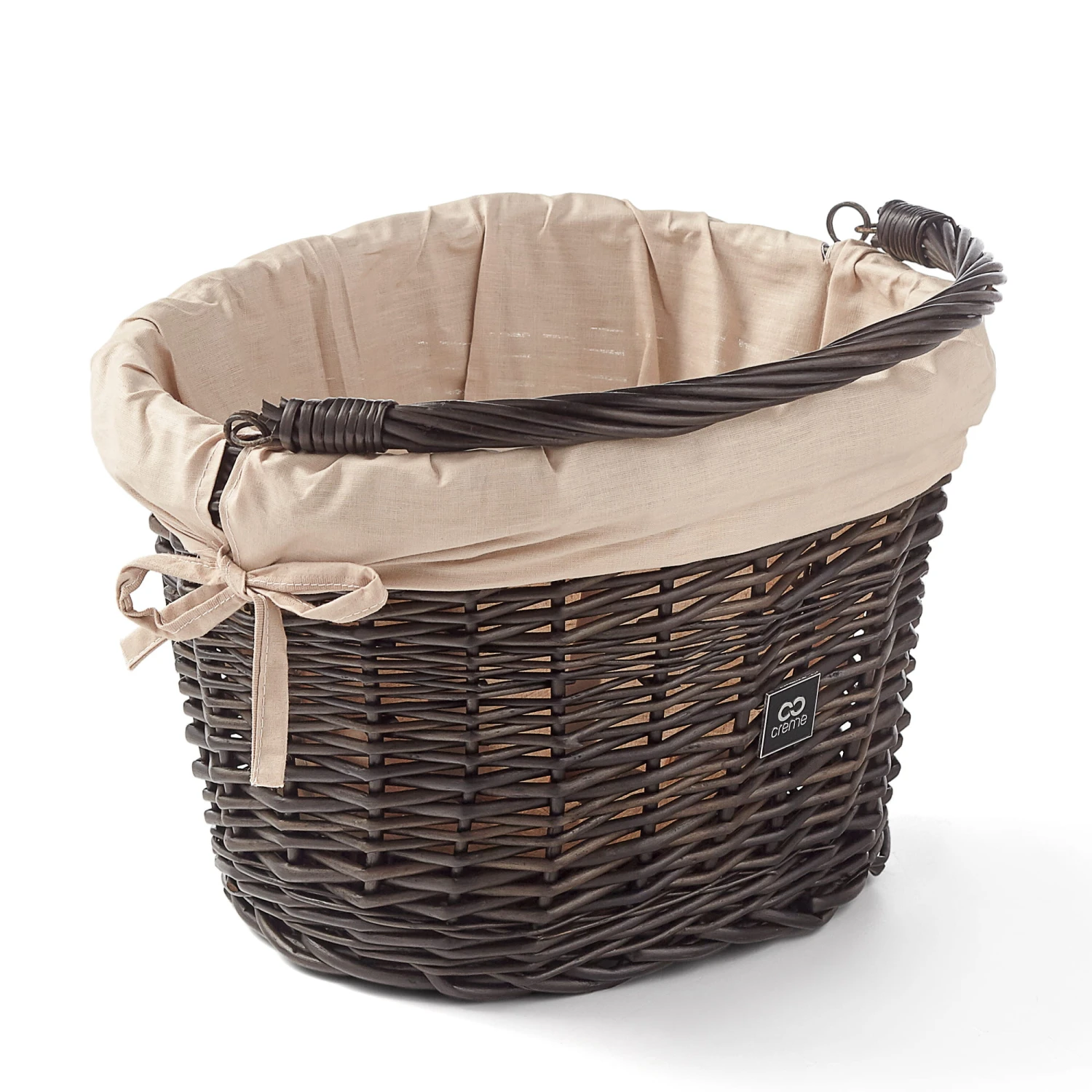 De rieten manden van Creme worden uitvoerig met de hand geweven. Ze zijn duurzaam, praktisch en zien er trouwens mooi uit. Dankzij de klem zijn ze gemakkelijk aan de fiets te bevestigen en de ingenaaide katoenen voering beschermt de inhoud. Perfect voor uw volgende shopping trip in de stad! Verkrijgbaar in twee maten. Dit is de kleine rieten mand.